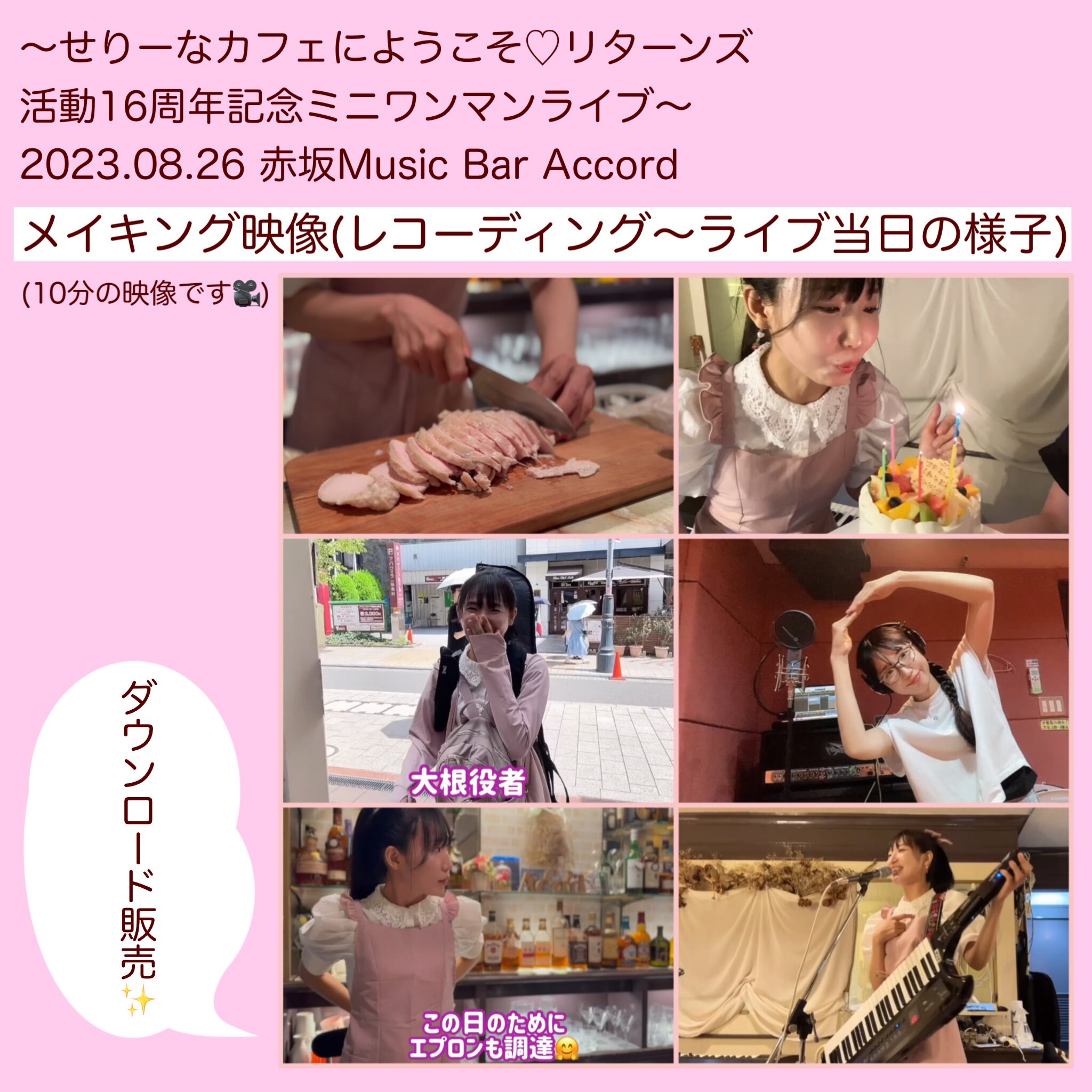 ~せりーなカフェにようこそ♡リターンズ 活動16周年記念ミニワンマンライブ~ 2023.08.26 赤坂Music Bar Accord メイキング映像(レコーディング〜ライブ当日の様子) 10分の映像です⭐︎